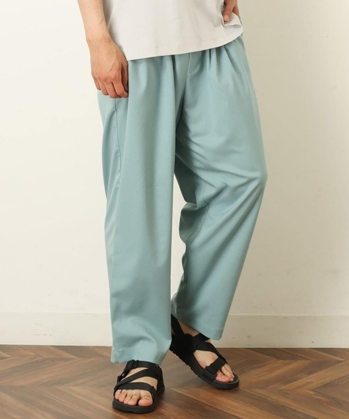◆【1サイズフィットフリー企画】体型の垣根を越えたサイズレスシリーズ。◆【デザイン】サイズ選び不要!着る対象を制限・限定しないサイズレスボトム。トレンド感のあるワイドシルエットがポイント。ウエストは前側はすっきり脇から後ろにかけてゴム仕様で、ストレスフリーな着心地です。ウエスト内側にはコードも入っており、お好みのフィット感に調整できます。裾にかけて、少しテーバードさせ、ワイドながらも品のあるシルエットに仕上げたこだわりアイテムです。これ1本で家族や体型の異なる友達ともシェアできる今どきな1本で夏服にオススメです。【素材】ドライタッチで程よくハリ感がある素材を使用。夏に嬉しい接触冷感機能付きのため、暑い時期にも快適に着用頂けます。【スタイリング】取り入れるだけでリラックス感のあるワンサイズパンツは、無地Tはもちろん、ロゴやフォトT合わせのカジュアルスタイルや、シャツ合わせのきれいめコーデにもオススメです。足元はスニーカーやレザーシューズはもちろん、ウォーターサンダル合わせで軽やかにコーディネートするのもオススメです。----------------透け感:なし裏地:なし伸縮性:あり光沢感:黒のみ:ややあり 他:なし生地の厚さ:普通----------------≪お気に入り登録機能の使い方≫■商品のお気に入り登録(ハートマークをクリック)再入荷通知や値下げ等、お得なご案内を受けることができます。----------------※お使いの液晶環境により、色味が多少異なる場合がございます。予めご了承ください。※サンプルにて撮影しておりますため、お届けの商品と仕様が若干異なる場合がございます。予めご了承ください。