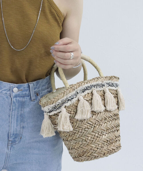 ◇fredy emue◇ 【2022 SS】 シンプルコーデにプラス!存在感のあるカゴバッグ 【point】 ・ツイード織テープと揺れるタッセルがポイント ・天然素材の水草を使用しているのでナチュラルな雰囲気に ・持ち手には合皮を巻く事により手が痛くなりにくいです ・口元は巾着なので安心して収納できます ●お取扱い上のご注意● *商品を長く愛用していただきたいため、アテンションタグを必ずご確認の上、着用又はお取り扱い下さい。 *店頭及び屋外での撮影画像は、光の当たり具合で色味が違って見える場合があります。商品の色味は、スタジオ撮影の画像をご参照下さい。 *商品画像に関しては出来る限り忠実に表示出来るよう努めておりますが、お客様がご利用のモニターの設定及び特性により、実際の商品と比較し色味に若干の誤差が生じる場合があります。 ◇商品のお気に入り登録◇ 【お気に入りに登録 ♡マークをクリック】を是非ご活用ください! 再入荷の通知や、ラスト1点の通知、セールの通知がいち早く届きます。 ◇ブランドのお気に入り登録◇ 新商品や再入荷など、いち早くブランドのお得情報が届きます。