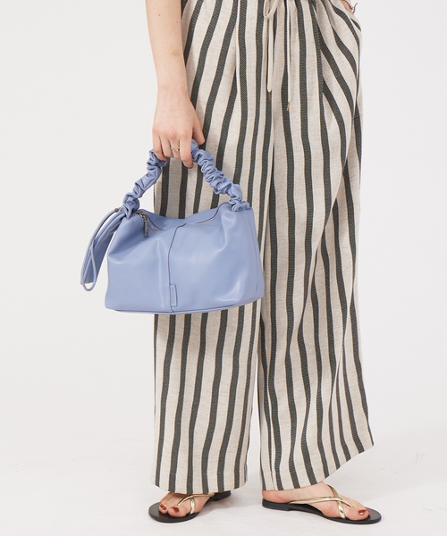 【Design】トレンドのワンハンドルミニバッグ。コーディネートに合わせるだけで今年らしいスタイリングに。 カジュアルからフェミニンなスタイリングまで毎日のコーディネートに幅広く合わせやすいアイテム。 コンパクトながら荷物もしっかり入り、機能面にも優れています。 【Detail】 縦型と相性の良い太幅のテープショルダーを採用。 BODYは、傷の目立ちにくいシィリンク型押しレザーで柔らかさも表現。スピンドルでベルトの長さもアレンジも可。 【pocket】 外側 背胴:ジップポケット×1 内側 前胴:オープンポケット×2 背胴:オープンポケット×1 パスケースパッチ付き 【color Coordinate 】 ベーシックなアイボリーに、絶妙なカラーのブラウン、スタイリングの挿し色になるイエローとブルーカラーの4色展開。 ※写真に一緒に写っているスカーフ以外の小物はセットではありません。イメージ画像となります。ご了承くださいませ。