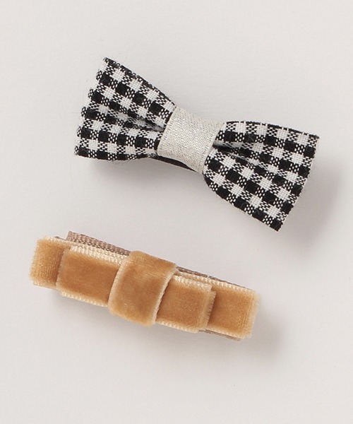 小さなリボンモチーフを添えたヘアクリップです。結び方と柄を変えたデザインの2Pセットで、幅広いアレンジをお楽しみいただけます。ワンタッチでつけ外せるため、手間なく簡単に顔周りの印象を変えてくれる優れもの。カラバリで揃えても大活躍する、可愛らしいパターンを取り揃えました。