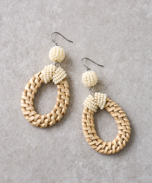 ※こちらの商品は余裕を持ったお届け予定日に設定しておりますが、お届け予定日は前後する可能性がございます。ご了承ください。 ラタンとホワイトビーズを組み合わせた涼し気なピアス。 楕円型のラタンはつけるだけでお顔回りを華やかにし、一気に夏らしい印象に。 ピアスフックの下についたホワイトのガラスビーズで作ったパーツが光沢感があり上品なアイテムです。 《商品画像について》 ご覧頂いている商品の写真につきましては、できるだけ実物の色に近くなるように努めておりますが お使いの環境(モニター、ブラウザ等)の違いにより、色の見え方が実物と若干異なる場合がございます。 予めご了承ください。 《予約商品について》 ・こちらの商品はサンプルでの撮影・計測となっております。実際の商品とは、商品の一部仕様が変更になる場合がございます。 ・サンプルの為、混率の詳細が確定しておりません。確定次第、記載いたします。 ・工場の生産の都合上、納期が変更になる場合がございます。発送日の前後についてはあらかじめご了承ください。 ・入荷状況により、お客様への発送が店頭販売より遅れる場合もございます。 《ハートをタップして商品のお気に入り登録》 登録カラーの商品の「残りわずか」「再入荷」「値下げ」通知を受け取ることができます。 ブランドフォロー 新商品などの入荷情報、最新のニュースやお得な情報を受け取ることができます。