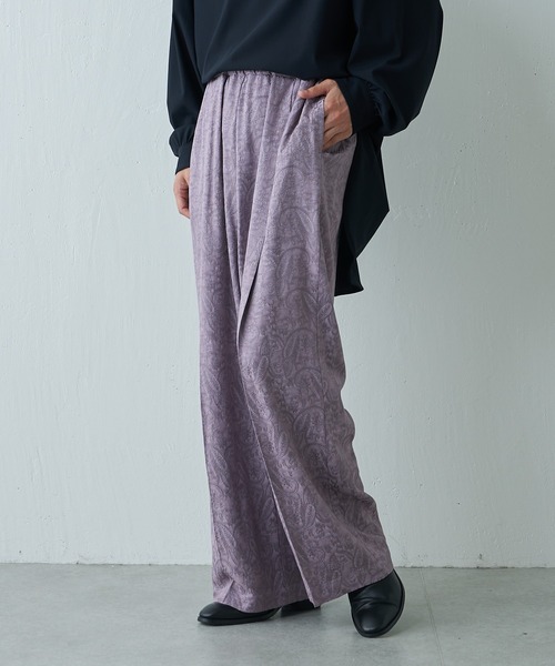Lui's(ルイス)より、珍しいジャガード柄のレーヨンジャガードワイドパンツの登場です。 パンツ一枚で存在感のある、コーディネートが楽しくなるアイテムです。 【素材】 素材には、光沢感と表面のジャガード柄が特徴的なレーヨン素材を使用。 着用した際のドレープ性と、ツルッとした涼しげな肌触りもポイントです。 【デザイン】 見た目の高級感と独特な表情が特徴的なジャガードのワイドパンツ。 一枚で存在感ある見た目が特徴的で、シンプルになりがちなこれからの夏のスタイルにオススメです。 ウエストから下にストンと落ちるワイドなシルエット。 ハイウエストでも穿いて頂ける様に股上は深く設定しております。 履き心地、シルエット、素材、全ておいて拘ったスペシャルなアイテムで、素材自体もなかなか見ることの出来ない素材のため、 在庫もかなり少ないアイテムとなっております。 【コーディネート】 見た目のデザインが印象的なアイテムなので、無地のTシャツに合わせて頂くだけでもコーディネートが成立します。 今季は、オープンカラーシャツや、オーバーサイズのTシャツにサンダルを組み合わせた、シンプルでミニマルなスタイルを楽しんで頂くのがオススメです。 メッシュTやレースシャツなどの透け感おあるアイテムと組み合わせたキレイめカジュアルなスタイルを楽しむ事も出来ます。 【ブランド】 Lui's(ルイス) モテる男のワードローブをテーマにモード&ストリートのMIXコーディネートを提案。 着心地、カッティング、素材感を重視した商品を国内外問わず編集し発信していく。 ■商品のお気に入りの登録(ハートマーク) 完売カラーの再入荷、ラスト1点の通知、セールの際の通知を受け取れます。 ■ブランドのお気に入り登録 新商品の入荷など、いち早くブランドのお得な情報を受け取れます。是非ご利用ください。 ※掲載商品の商品の色味は、屋内の光の照射や角度により実物とは色味が異なることがございます予めご了承ください。
