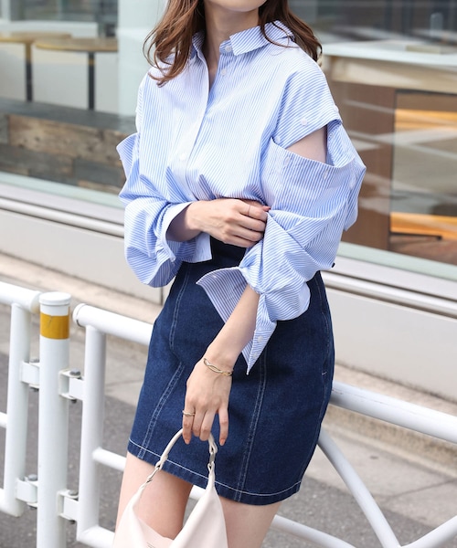 NICECLAUP 2022 sama Collection 大人気肩開きシャツに新作登場!マニッシュな着こなしにピッタリアイテム簡単にトレンドの着こなしが叶う肩開きシャツが登場マニッシュな中に女性らしさの感じられる肩開きデザインシャツは、1枚で着映えするアイテムです。おしりが隠れるゆったりめの着丈なので体型カバーの効果も◎肩ボタンを開き閉めすることで印象も変えられるので、オンオフ両方でお使いいただけます。1枚での着用はもちろん、レイヤードにもおすすめなアイテム。前開きで羽織りとしても着ていただけるので、夏は紫外線対策や冷房対策で羽織りに使うのもオススメです。■オススメスタイリング1枚で着こなすのはもちろんレイヤードの着こなしもオススメ。インナーにハイネックを入れたり、今期トレンドのクロップド丈トップスとレイヤードしても◎きちんと感も出るアイテムなので、ジャケットやジレを羽織りオフィスコーデとしてもお使いいただけます。シャツブラウスのデザインなので、パンツにもスカートにも相性が良く、春夏ならキャミワンピースに羽織でお使いいただいてもオススメです。-------------裏地:なし伸縮性:なし生地の厚さ:普通生地の重さ:普通-------------※サンプルでの撮影のため、実際のものと仕様や色が異なる場合があります。※室内、室外での撮影のため実際より明るく映っていたり、暗く映っていたりする場合がございます。※品質表示を必ずご確認下さい。▼お気に入り登録のおすすめ【気になるアイテムを登録】ハートをクリックしてお気に入りに登録すると完売カラーの再入荷やラスト1点の通知、セールの通知を受けとることができます。【ブランドを登録】新作入荷や再入荷、セール通知など、いち早くブランドの情報を受けとることができます。是非ご利用下さい♪