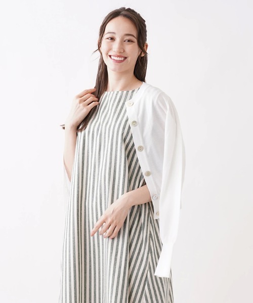 << POINT >> ・柔らかな肌ざわりのクルーネックのニットカーディガン ・フロントの大きめシェルボタンがアクセントになった1枚 ・シンプルな定番シルエットなのでトレンドに左右されず、何にでも合わせやすいので色違いで持つのもおすすめ ・さらっと羽織れるカーディガンは冷房・紫外線対策としても活躍 ・自宅で手洗い可能なウォッシャブルアイテム ********** 着用シーズン:春夏・秋 ケア方法:ウォッシャブル・ドライクリーニング 生地の伸縮性:ややあり 生地の厚さ:やや薄手 透け感:ややあり 裏地:なし その他:前ボタン ********** <<ブランドについて>> 【BRAHMIN/ブラ-ミン】 自分スタイルのおしゃれを楽しむ女性に向け、上質でさりげないトレンドを加えた新・大人服をコンセプトにしたブランドです。きちんと感がありながらも計算されたシルエットやこだわりのディティールが目を引きます。
