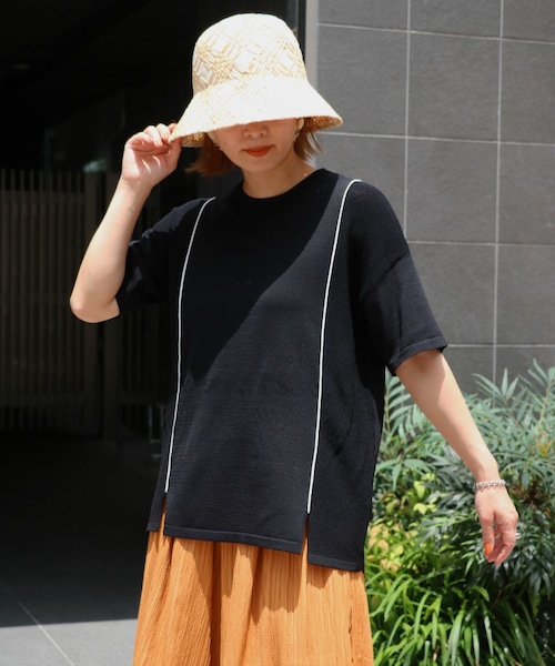 商品名:Sheson(シーズン)パイピングバイカラーニット 商品番号:p225mu055 商品説明:【2022SS】 ・涼しいサマーニット ・パイピングデザインのシンプルニット サイドにはスリット入りでパンツにもスカートでもバランスよく決まるちょうどいい着丈! カジュアル~オケージョンや綺麗めシーンにも活躍し着回し力は抜群。 ハンドウォッシャブルでイージーケアなのも◎ *商品画像のお色は撮影環境やモニターによって、 実物と若干異なる場合がございます。 *他のサイトと在庫を共有している為、ご注文頂いた商品が欠品となる場合もございます。 *3,980円以上は送料無料(沖縄、離島は9,800円以上で送料無料)となります。 宅配便550円、離島1,210円、沖縄1,430円、メール便一律280円(離島・沖縄含む)です。 ------------------------------------------------------------------------- サイズ:Fサイズ(モデル160cm-BLK/165cm-OWH/169cm-LBL) 平置き・実寸: トップス ・身幅 52cm ・着丈 66cm ・肩幅 54cm ・アーム 18cm ・袖丈18cm ※個体によって誤差がございます。 **生地詳細** 【裏地】なし【生地の伸縮】あり【生地の透け感】OWHのみややあり **洗濯表示** 手洗いで洗濯可 素材:レーヨン65%ナイロン35% 製造:中国 カラー:オフホワイト・ライトブルー・ブラック