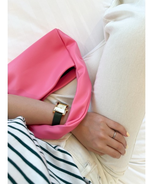 夏らしい明るいカラーが目を惹くハンドバッグ。シンプルなスクエアのシルエットに、くるっとねじれた持ち手がさりげなくポイントに。付け外し可能なチェーンで持てば、ショルダーバッグとしても使えます◎シンプルになりがちな夏のファッションに、差し色として活躍間違いなしです♩