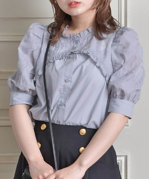 <レースのボレロをかぶせたようなデザイン性が光るブラウス> ▼デザイン ブラウスシルエットで上品さがあるブラウス レースボレロを重ねたようなデザインで、さりげない肌見せも叶います レースとフリルをタップル使用したガーリーなブラウスです。 前後2wayでご着用頂けます! ▼コーディネート トップスインするとバランスよく着ていただきたいアイテム ハイウエストボトムスとの相性抜群! ------------------------------ 生地感:薄手 伸縮性:なし 透け感:ある 裏地:なし ----------------------------- ▼ブランド紹介 ems excite (エムズエキサイト) “more fun more cute” 今をもっと楽しく もっと可愛くいたい女の子に向けた girly cuteなブランド #大人ガーリー#ガーリーコーデ #フレンチガーリー#ブラウス#花柄ブラウス ▼注意事項 ※撮影環境やモニター環境によって実際の商品とお色味が 多少異なってみえる場合がございます。 品番:ES256123B002/ 品名:2way花柄ブラウス