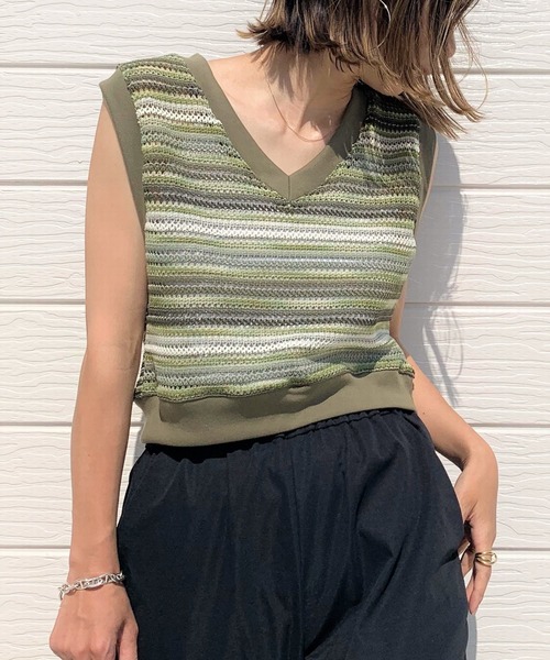 【WEB限定】 グラデーションボーダーが目を惹くニットベストです。 コンパクトなショー丈でハイウエストボトムとの相性も抜群。 透け感がある編地になっているので、キャミソールなど華奢なインナーと合わせるのがおすすめ。 Tシャツと合わせてカジュアルダウンしたスタイリングもお楽しみください。 《インフォメーション》 ◆商品のお気に入り登録 完売していても再入荷時に再入荷通知を受け取ることができますので、是非ご登録ください。 ◆ブランドのお気に入り登録 新商品や再入荷などの情報を受け取ることができますので、是非ご登録ください。