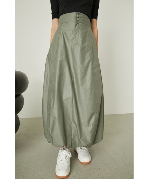 RIM.ARK(リムアーク)のGlossy balloon SK(460FAU31-0340)。<br>特殊加工によるシルキーな光沢と洗いざらしのような適度なシワ感が互いの良さを残しつつ、両立したソフトで滑らかなタイプライターの生地を使用しています。撥水加工も施されているのが嬉しいポイント。たっぷりと生地を使用し程よいボリューム感はありますが、バランスが取りやすいようウエストベルトを太めにデザインした為、メリハリのあるコーディネートにも合わせて頂けます。生地にもシルエットにもとことんこだわった為、スタイリングの主役として着て頂きたい一枚です。<br><br>※画像の商品はサンプルです。実際の商品と仕様、加工、サイズが若干異なる場合がございます。▼商品のお気に入り登録お気に入りアイテムの値下げ・再入荷・在庫1点などの通知を受け取ることができます。▼ブランドのお気に入り登録新作アイテムの入荷や人気アイテムの再入荷、タイムセールやクーポンなど、いち早くブランドのお得な情報を受け取ることができます。【RIM.ARKについて】凛とした強さ、知性、品格。揺るぎない「芯」。 RIM.ARKが目指すのは、自立した女性の美しさを引き立てる服。 無駄を削ぎ落としたシンプルでミニマルなデザイン。 ものづくりの息吹が感じられる素材、立体的なシルエット。 トレンドにとらわれない、タイムレスで本質的なアイテムを通して 纏う人の内面的な豊かさを表現したいと考えます。オフィシャルサイトhttp://www.rim-ark.jp/