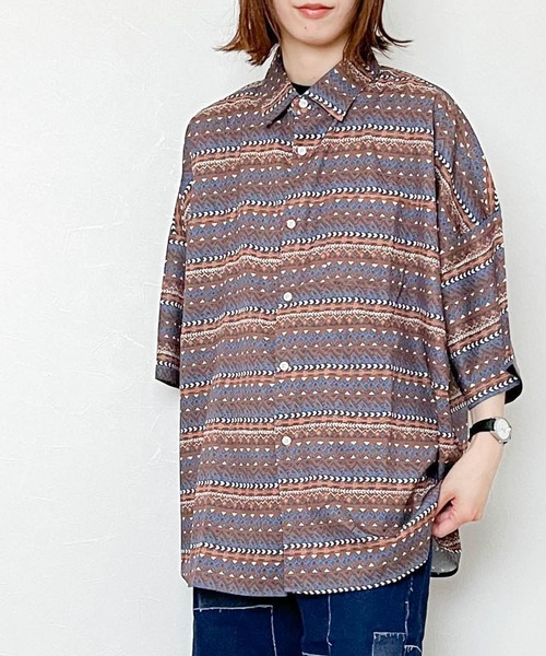 《デザイン》 ユーズドライクのデザインがポイントの総柄プリントビッグシャツが登場! 程よい厚みとハリのある生地を取り入れ、バランスの取れた立体感を表現。 肩を絶妙にドロップさせ、こなれたルーズ感とナチュラルさを表現できるシルエットに。 ワイドシルエットながら計算し尽くされたスタイリッシュなデザインにも注目です。 カラーバリエーションもベーシックに着こなしやすい定番カラーが特徴。 《素材特性》 程よい厚みの生地を仕様している為、これからの時期にお使い頂けるアイテムです。 《スタイリング》 インナーにTシャツやタンクトップとの相性抜群! ワイドパンツやデニムパンツ、スキニーやシェフパンツなど様々なスタイルにマッチします。 ※男女問わずユニセックスでお使い頂けるので、ご自身用は勿論、プレゼントにもオススメです。 ----------------------------- 透 け 感 : あり 伸 縮 性 : なし 裏 地 : なし 光 沢 : あり ポケット : あり 厚 さ : 薄め 柔らかさ : 柔らか ----------------------------- ※ご覧のモニター環境により、画像の色味と多少異なる場合がございます。