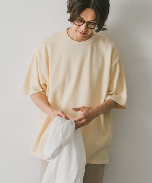 XLサイズはWEB限定サイズです。【ポロシャツでおなじみの鹿の子生地を用いたTシャツ】 夏場に快適に着られる鹿の子生地を用いた半袖Tシャツ。【生地】ポロシャツでおなじみの鹿の子生地は凹凸のある表面で、汗をかいても張り付くことなく、通気性もよく快適に過ごしていただけます。【ディテール】ほどよくゆとりのあるサイジングを採用しています。ポケットのないシンプルなデザインで素材の表情が光る一着です。裾にはスリットをあしらいました。【スタイリング】・センタープレスの入ったトラウザーでキレイめに・ベイカーパンツやデニムなどでカジュアルコーディネートに・リネンパンツやイージーパンツと組み合わせてリラックス、ナチュラルスタイルに※商品画像は、光の当たり具合やパソコンなどの閲覧環境により、実際の色味と異なって見える場合がございます。予めご了承ください。※商品の色味の目安は、商品単体の画像をご参照ください。▼お気に入り登録のおすすめ▼お気に入り登録商品は、マイページにて現在の価格情報や在庫状況の確認が可能です。お買い物リストの管理に是非ご利用下さい。-----------------------------透け感:なし伸縮性:あり裏地:なし光沢:なしポケット:なし-----------------------------