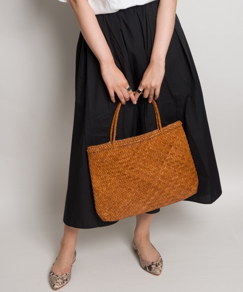 Dragonの中も定番人気のベストセラーモデル。程よいサイズ感カゴバッグのような、細かく丁寧に編み込まれたメッシュが美しいシンプルなバッグです。上質なレザーで手作りの暖かみと風合いを感じて頂けます。 程良いサイズで普段使いしやすく、丸みを帯びたフォルムが女性らしい印象に。軽くて丈夫で、幅広いスタイルに対応してくれます。職人の手仕事で編み上げられるバッグは、1点1点風合いが異なり、世界に一つだけの特別感が魅力です。籐のカゴのように軽く、長時間持ち歩いても重さが気になりません。また使い込む程に革の色味や風合いが増していきます。DRAGON DIFFUSION/ドラゴンディフュージョン1985年、ベルギーのブリュッセルに設立された革製品ブランド。メッシュレザーに特化し、名だたるメゾンブランドにも素材を提供してきた高い技術力を持ちます。インドの織り編み技術を生かし、職人の手によって編み上げられたメッシュレザーバッグはシンプルでいろいろ使える使い心地の良いミニマルな製品を生み出しています。【長く使いこむほどに独特の風合いが楽しめるレザーバッグ】職人のハンドメイドで織られたレザーメッシュトートバッグ。留め具の無いオープン開閉なので、出し入れもしやすいのが嬉しい! 革バッグなのに軽くて柔らかい!マチ付・小型のバッグなので、ちょっとしたお買い物などの普段使いに最適♪・天然素材を使用の為、色ムラや擦れなどが御座いますが、こちらは不良品では御座いませんので予めご了承の上、ご購入下さい。・ハンドメイド製品に為、個体差が御座います。商品ページ記載のサイズより+-2cm程誤差が御座います。予めご了承の上、ご購入下さい。・ハンドメイドのため、縫製の品質にバラつきがある場合がございます。また、柔らかな革を使用しているため、わずかなしわ、傷などが見られる場合があります。品質上まったく問題はございません。・革の表面に見られる多少のキズや色ムラは天然の革の一般的な特徴です。 ・アイテムごとの革の色や手触りも若干異なりますので、予めご了承下さい。・ハンドメイドのため、編み目が大きく穴が開いたように見える、編み目が緩く飛び出しているように見える等がある場合がございますが、これは良品の範囲内であり不良ではありません。・生地との摩擦や水に濡れた場合など、色落ちや衣服などへの着色のおそれがありますのでご注意ください。