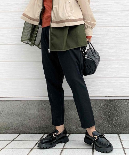 イージーな穿き心地ながら、お仕事着としても使えるようなきれいめパンツ。 ウエストはドロスト仕様で、ジャストサイズに調節可能です。 形もテーパードタイプで、すっきりきれいなラインが嬉しい1本。 お仕事着としてはもちろん、Tシャツなどのカジュアルなアイテムを合わせていただくのもおすすめです。 《インフォメーション》 ◆商品のお気に入り登録 完売していても再入荷時に再入荷通知を受け取ることができますので、是非ご登録ください。 ◆ブランドのお気に入り登録 新商品や再入荷などの情報を受け取ることができますので、是非ご登録ください。