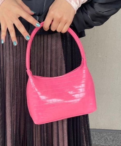 おしゃれなセンス溢れるミニバッグどこかレトロな印象のクロコ風ミニバッグ。鮮やかなカラーリングで、コーディネートのアクセントにぴったりです。トレンド感のあるコンパクトなサイズもポイント。幅広いスタイリングに大活躍すること間違いなしのひと品です。※色によって型押しの柄の出方が異なります。※光の当たり具合やパソコンなどの閲覧環境によって、実際の色味と異なって見える場合がございます。予めご了承ください。※商品の色味は商品単体で撮影した画像をご参照ください