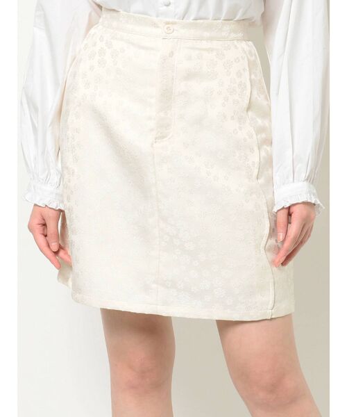 スカラップデザインが可愛らしいミニスカートは、 ほどよく張りのあるジャガード生地を使用し、 綺麗な台形シルエットに。 お花の同色ジャガード生地を使用し、 よりgirlyに仕上げました。 立体感のある素材を使用しているのでお取り扱いもしやすく、 旅先などにもおすすめです。 カットソーからブラウスまで、 幅広いアイテムとのコーディネートが楽しめます。 ※左右脇にスラッシュポケット付きになります。