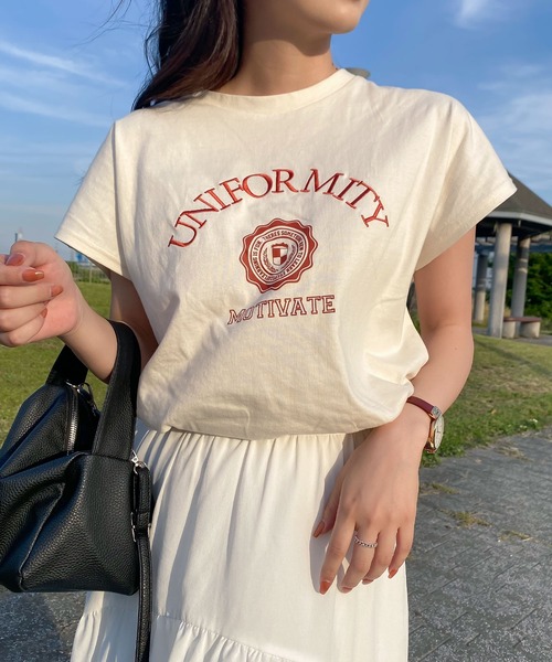 左右のロゴ刺繍がアクセントになったデザインと、ロゴ刺繍×エンブレムプリントがアクセントになったデザインの、異なる2パターンをご用意。着こなしに合わせてパターン違いで揃えるのも◎。【素材・サイズ感】吸水性、通気性に優れたコットン100%の生地を採用。フレンチスリーブのゆったりとしたサイズ感で、旬な着こなしをお楽しみいただけます。《KOBE LETTUCE ー神戸レタスー》 プチプラレディースファッションからコスメまで、トレンドアイテムを豊富に取り揃えております。 毎シーズン発売されるインフルエンサーとのコラボ商品はSNSでも話題に。