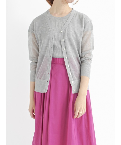 Vネックデザインが女性らしい抜け感を演出するカーディガン。しっとりとしたレーヨン混で肌ざわりも抜群です。バランスの取りやすい着丈でデイリーユースしやすいのも◎綺麗めからカジュアルまで、幅広い活躍が期待できる万能アウターは、ワードローブに備えておくと重宝します。