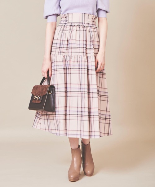 ◆◆2022Autumn/Winter Collection◆◆秋らしいカラーのチェックのプリントの張りのあるタフタスカート。ウエストゴム仕様で、脇にリボンベルト布が挟み込まれているので前後どちらでも好みな場所でリボンに結べます。ハイウエストのリボンベルトのウエストマークでスタイルアップ効果あり◎華やかなフレアシルエットにシンプルなニット合わせで、大人っぽく着て頂けます。※サイズ表記につきましては、商品によって同サイズや同色等であっても各商品毎に誤差が生じる可能性がある為、サイズ表記はあくまでも目安としてご参照ください。※モデル着用アイテムはサンプル商品の為、実際よりサイズや色が異なる場合がございます。サイズはサイズ詳細等にてご確認下さい。※モデル着用カラーは、撮影環境の兼合いにて、実際のカラーと異なって見える場合がございます。商品カラーに関しましては、物画像をご参考に確認をして頂ければと思います。※取り扱いについては、商品についている品質表示でご確認ください。※商品画像はサンプルのため、色味や仕様変更がある場合がございますので予めご了承ください。※画像と柄の位置が異なる場合がございます、ご了承下さい。※照明の関係により、実際よりもやや明るく見える場合がございます。またパソコンなどの環境により、若干製品と画像のカラーが異なる場合もございます。予めご了承ください。