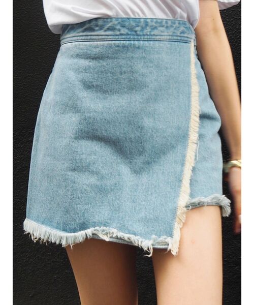 ■商品ポイント・フリンジでコーデのアクセントに・ラップスカートで太もも細見え◎・インナーショーツ付き■オススメ―コーディネートシンプルながらもフリンジがアクセントになっている1枚。トップスインでスタイルUP。ブーツと合わせてY2Kっぽくも。-------------- 透け感:なし 裏地:ありポケット:ありファスナー:あり--------------過去の人気スカートの復刻デザインのデニムミニスカートです。インナーショートパンツ付きなので安心して履いていただけます。