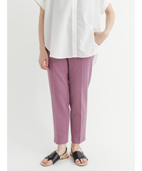 センタープレス入りできちんと感に美脚も叶えてくれるテーパードパンツ。 動きやすいハイライズ仕立てに肌馴染みの良い綿100%で、穿き心地にもこだわりを込めました。ウエスト後ろはゴム仕様で締め付け感もなし! 同デザインのトップスとセットアップで着こなすのもおすすめです。 ※商品画像は、撮影環境やお客様のご利用のPC・スマートフォンのモニター環境などにより実物と色味に差異がある場合がございます。<br><br> ★《お気に入り登録》でお得な情報をGET★ ① 商品ページ内のハートマークをクリック! ② 以下通知が受け取れます! 「再入荷」「ラスト1点」「特別セール」etc.. \ブランド、ショップのお気に入りも是非!/