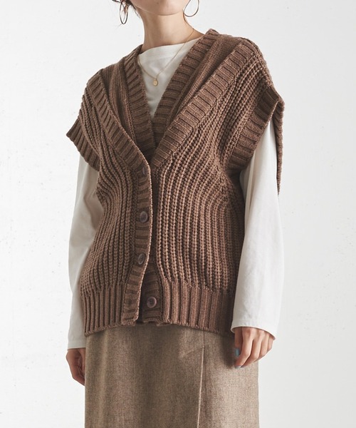 2022 autumn & winter 表情ある編み地がこなれ感漂うニットベスト ●ゆとりを持たせたシルエットと程よい透け感が重くならず、レイヤードスタイルや一枚着としても重宝して頂けます。 ●コンパクトなサイジング、リラクシーなサイジングとボタンで調整可●Vネック空きでカジュアルさを削ぎ落とし、女性らしさを演出 ●肩落ちなので、ノースリーブの上に羽織として纏えるので、その日の気分やスタイリング次第で着こなしを替えて楽しめます。 【MATERIAL】 アクリル 50% ナイロン 30% ウール 20% ・ドライクリーニング可(石油系溶剤による弱いドライクリーニングができる) 【気になる商品は「お気に入り」登録を】 ハートマークをクリックし、お好きなカラーを選んでお気に入りに登録すると 入荷情報や残り1点の通知、完売カラーの再入荷、セール情報などを受け取ることができます。 ※撮影場所やお使いのモニター環境により若干お色味が異なる場合がございます。 特にロケの撮影では明るく見える傾向にございます。詳細撮影画像で色味をお確かめくださいます様お願いいたします。 ※雨の日のご使用はご注意下さい。 ※サンプルで撮影をしております。若干の仕様が変更になる場合がございますので予めご了承の上ご注文くださいますようお願いいたします。 ※サンプルでの採寸のためあくまで目安となります。予めご了承ください。