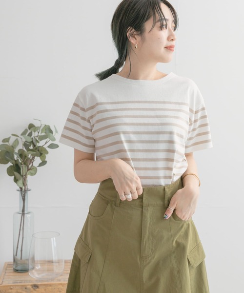 夏のベーシック人気アイテムパネルボーダーTEEが登場。やや厚みのある透け感のでにくい生地を使用し、ハリのあるシルエットを実現。クルーネックの首元は、女性らしいアイテムでも合わせやすくどんなアイテムとも相性のいいトップスです。 ※商品画像は、光の当たり具合やパソコンなどの閲覧環境により、実際の色味と異なって見える場合がございます。予めご了承ください。 ※商品の色味の目安は、商品単体の画像をご参照ください。 ▼お気に入り登録のおすすめ▼ お気に入り登録商品は、マイページにて現在の価格情報や在庫状況の確認が可能です。 お買い物リストの管理に是非ご利用下さい。 ----------------------------- 透け感:ややあり 伸縮性:ややあり 裏地:なし 光沢:なし ポケット:なし -----------------------------