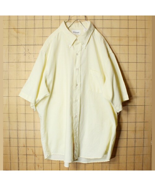 USA製 Edwards ボタンダウン シャツ メンズXL相当 イエロー 半袖 アメリカ古着です。 アメリカ製Edwardsのボタンダウンシャツです。 ボディは程よい厚みのある軽い着心地のポリコットン生地。 カラーは風合いのあるイエローです。 タウンユースからアウトドアまで幅広くご着用いただけます。 デニム、チノパン、スラックスなど様々なボトムに合わせやすいシンプルなデザインです。 メンズXL相当です。 詳細サイズにてご確認ください。 当店にてクリーニング済みです。 背面にシミがあります。 詳細画像にてご確認ください。 使用感は多少ありますが、goodコンディションです。 【表記サイズ】 18 【素材】 コットン 60% ポリエステル 40% 【採寸サイズ】 肩幅:52cm 身幅:66.5cm 着丈:77.5cm 袖丈:28cm