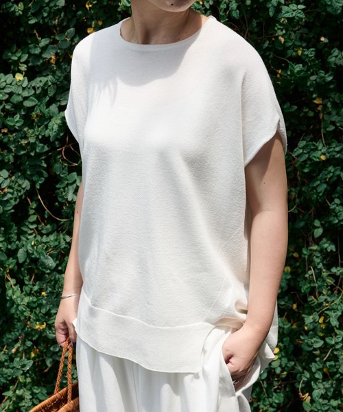 ※こちらの商品は余裕を持ったお届け予定日に設定しておりますが、お届け予定日は前後する可能性がございます。ご了承ください。シンプルで着回し力抜群のフレンチスリーブニット。その名の通りゆったりとした肩周りやアーム部分が、暑い時期も快適な着心地を実現。暑い時期にさらっと着られる薄手ながら、透け感はなく安心感のある着心地です。さりげなく肩周りをカバーするフレンチスリーブで、1枚で着やすいデザイン。前後差がありすっきりとした長すぎない着丈で、小柄な方にもおすすめのひと品です。《商品画像について》ご覧頂いている商品の写真につきましては、できるだけ実物の色に近くなるように努めておりますが お使いの環境(モニター、ブラウザ等)の違いにより、色の見え方が実物と若干異なる場合がございます。 予めご了承ください。《予約商品について》・こちらの商品はサンプルでの撮影・計測となっております。実際の商品とは、商品の一部仕様が変更になる場合がございます。・サンプルの為、混率の詳細が確定しておりません。確定次第、記載いたします。・工場の生産の都合上、納期が変更になる場合がございます。発送日の前後についてはあらかじめご了承ください。・入荷状況により、お客様への発送が店頭販売より遅れる場合もございます。《ハートをタップして商品のお気に入り登録》登録カラーの商品の「残りわずか」「再入荷」「値下げ」通知を受け取ることができます。ブランドフォロー 新商品などの入荷情報、最新のニュースやお得な情報を受け取ることができます。