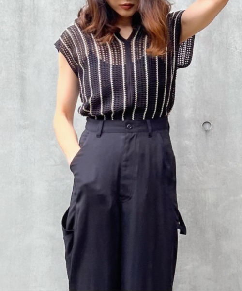 y/m×Yukieざっくりとした編み目のストライプニットトップス■デザイン今年らしいストライプ柄を取り入れたニットトップス。 デコルテの見え方が綺麗な両Vネックで、縦ストライプが体型をすっきり見せてくれます。 ヴィンテージ感やレトロな雰囲気もあるので、フェミニンなスタイルにも相性のよいアイテム。■コーディネートキャミやタンクトップなどなんでも合わせやすく、真夏はショート丈のものと合わせてウエストラインをチラ見せさせるようなスタイルも可愛いと思います。 モノトーンでまとめたりデニムにあわせたり。 サロペットなどオールインワン系のインナーとしても◎【y/m×yukie】yukkey_iii着心地が良く日常に取り入れやすい大人カジュアルをベースに流行りも取り入れ、ずっと着続けられるベーシックな要素も大切に。『かっこいいけど、どこか可愛い』 大人の格好良さや可愛さを、自分らしくその日の気分によって選ぶ楽しさをご提案します。【お買い物をよりお楽しみいただく為に】▼商品のお気に入り登録お気に入りアイテムの値下げ・再入荷・ラスト1点などの通知を受け取ることができます。▼ブランドのお気に入り登録新商品や再入荷、セール、クーポン配布などいち早くお得な情報を受け取ることができます。※撮影商品はサンプルの為、実際の仕様と異なる場合がございます。※画像の商品は光の照射や角度、お使いのモニター環境により、実物と色味が異なる場合がございます。品番:522FSC70-3710品名:ストライプノースリニットトップス