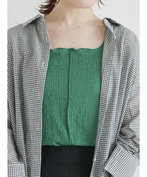しぼしぼな表面感にメロー仕様を施した、大人可愛いタンクトップ。首元はスクエアカットで女性らしくデコルテを美しく魅せてくれます。ボディラインに沿うようなフィット感がありつつも、伸縮性に優れた素材なので締め付け感もなく快適な着心地を実現。一枚で爽やかに、インナーとしてちらりと覗かせても、こなれたスタイリングに仕上げてくれる優秀アイテムです。※商品画像は、撮影環境やお客様のご利用のPC・スマートフォンのモニター環境などにより実物と色味に差異がある場合がございます。
