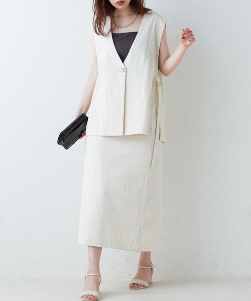 【2022SS natural couture】ナチュラルな風合いが魅力◎涼しげナロースカート■Design 身体馴染みの良い優しいコットン素材を採用。ウエストの後ろ部分はゴムを仕様し、さらっとしたポリエステル素材の裏地付きで履き心地豊かな1着です。余計な切り替えを作らず、サイドファスナー仕様でウエストラインをすっきり仕上げたことで、インスタイル・アウトスタイルお好みのトップス合わせで楽しんで頂けます。■Styling シンプルなロゴTをはじめ、旬のシアー素材のトップスと合わせてトレンド感のあるスタイリングに仕上げるのはもちろん、シャツテールのTシャツや綺麗め素材のブラウスと合わせても異なる雰囲気を楽しんで頂けます。同素材の0321070080 : サイドスリットノーカラージレとセットアップでもお召し頂けます。■Fabric 表地には身体馴染みの良いコットン素材を採用。さらっとしたポリエステル素材の裏地付きで、安心してお召し頂けます。カラーは、コーデの主役になる鮮やかなオレンジ・ブルーをはじめ、ナチュラルな生地の風合いが引き立つオフ・ベージュ・ブラックを合わせた全5色展開でご用意しました。■Series0321070080 サイドスリットノーカラージレ と同素材裏地丈:52cm===============透け感:ほとんどなし裏地:あり伸縮性:なし光沢感:なし生地感 :身体馴染みの良い生地感===============【お気に入り登録でお得な情報がいっぱい】・「商品のお気に入り登録」で再入荷通知や、ラスト1点の通知、セール通知をいち早く受け取ることができます。・「ブランドのお気に入り登録」で新商品や再入荷など、お得な情報を受け取ることができます!※店舗の入荷時期は商品によって異なります。店頭の在庫状況につきましては各店舗にてお問い合わせください。202206172022SS_natu22SS