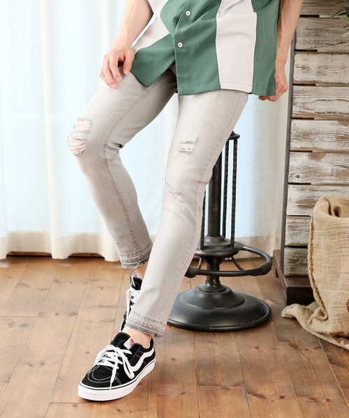 足元に抜け感を添えるアンクル丈デニムパンツ!シルエットと穿き心地を重視したスキニーテーパードシルエットで全体をスリムにまとめて美脚効果もバツグンな一着。伸縮性抜群のストレッチデニム素材を採用。細身ながらも窮屈感の無い履き心地となっています。ビンテージ感抜群の仕上がりのダメージデニム加工を施し、極上の仕上りになっています。ファスナーはYKKファスナーを使用し拘りのクオリティー!細部や加工に拘ったスーパーストレッチデニムアンクルパンツです。【カラバリ】・ブラック・グレー・ライトグレー・インディゴブルー・ブルー【お買い物をお楽しみいただく為に】▼商品のお気に入り登録完売カラーの再入荷やラスト1点の通知、セールの通知を受け取ることができます。▼お気に入りショップに追加新商品や再入荷など、イチ早くショップのお得な情報を受け取ることができます!