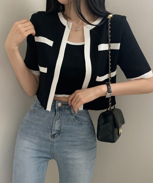 ♥ 毎年リピートオーダー!ムニールの夏のホットアイテム ♥ 【配色クロップドニットカーディガンセット】 キャミソール+半袖カーディガンのセットで活用度の高いアイテムを紹介します。 ▼ポイント - デイリーな無地ライン - セットアイテム - 女性らしい雰囲気 ▼ディテール お洒落で上品な配色ニットカーディガンです:) キャミソールはクロップ丈で裾の伸びを最小限に抑えました。 カーディガンは腰までくる丈感で、 脚が長く見えて、肩ラインはきれいに見せてくれます♡ しっかりとした素材で、着用時のシルエットも◎ 女性らしさがUPするこの夏おすすめのアイテムです! ▼おすすめコーデ スラックスやデニムなど ボトムスによって様々な雰囲気のコーディネートを 楽しむことができます:) *ご覧のモニター環境や撮影環境に応じて実際の 商品の色と異なって見える場合がございます。ご了承ください。 *素材の特性を考慮して管理法留意事項を購入/着用する場合は必ずご確認をお願いします。 サイズ感:普通 伸縮性:普通 肌触り:普通 厚み:普通 透け感:なし 【by muni:r とは】 "munir" は、イタリア語で "服を着る" を意味します。 韓国のファッションと日本のファッションの良さを一つにまとめて 大人カジュアルにちょっぴり甘い、1枚でどんなシチュエーションにも活用できる服がある 「私だけのシークレットクローゼット」がコンセプトです。 「より自分らしく、より自分を好きになる」体験をムニールは伝えたい。 20代前半から20代後半まで幅広く着ていただける女性のためのブランド by muni:r でございます。 ★商品お気に入り登録 [お気に入り登録] を押すと登録完了! お好きなアイテムとサイズのカラーを登録すると再入荷、販売のお知らせ等を受け取れます。 ★ブランドお気に入り登録 新商品、お買い得情報、クーポンなどをできるだけ早く通知を受け取れます。 - ブランドの最新情報はinstagram【@by__munir】でご確認いただけます! * 注文履歴ページよりご注文いただいた商品の配送時間を確認できます。 * 他のキャンペーンにより、価格が変わる場合があります。
