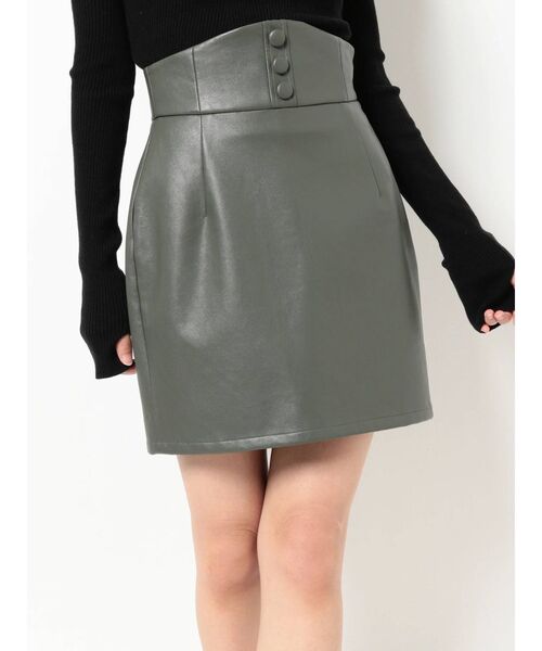 1枚で美シルエットのミニスカート▽Point▽滑らかな表面感とハリが特徴の、フェイクレザー素材を使用したボトムス。ウエストコルセットデザインでスタイリングにぐっとトレンド感を演出してくれる新鮮な表情のアイテム。これ1枚でコーデにクールさをプラスできるので大活躍間違いなし!!▽Styling▽カットソーからニットまで、どんなトップスにも合わせられる万能アイテム!!レザー見えスカートは1枚持ってるだけでコーデに季節感と新鮮味をプラスしてくれます♪