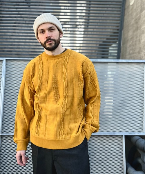 シンプルに見えて実はクセが強い!編み地にこだわったボトルネックニット/セーター!!・あらゆる柄をジャガードで表現しつつ、意図的に編み残しを加える事で独特の表情に仕上げたニット・ボトルネックでゆったりとしたサイジングは80年代を彷彿させる仕上がりのセーター・インパクトのある派手な編み柄を単色で仕上げ、シンプルだが主張のある仕上がり・パッと見のボリュームある雰囲気より軽さもありとても着やすいおすすめコーディネート標準的〜ややゆとりのあるな大き過ぎないサイジング。ボトムにはカジュアルなデニムやカーゴパンツ、チノパンなどと相性が良い。また、キレイめなフレアパンツやスラックスなど合わせやすい。トップスは秋から冬にかけてはシャツジャケットやカバーオール、ジャケットやブルゾン、Gジャンやレザージャケットなど様々なライトアウターと合わせられる。冬からボアフリースジャケットやダウンジャケット、MA-1はモッズコートなどカジュアルアウターとも相性が良い。--------------------------------------------------------------------------------・裏地(なし)・伸縮性(あり)・光沢感(ややあり)・生地の厚さ(普通)・サイズ感 (普通〜大きめ)--------------------------------------------------------------------------------【お気に入り登録をおすすめします】■商品のお気に入り登録■再入荷、残り1点、セールなどの通知を受けることができます。■ブランドのお気に入り登録■新入荷や再入荷、ショップのおすすめトピックスなど、いち早くブランドの情報を受け取ることができます。————————————————————————————--【MR.OLIVE】デザイナー兼ディレクター:長尾亘が2003年よりスタート。アメリカがヨーロッパに強く憧れた1960年代から70年代のカルチャーを基本ルーツとし、ロック・オーセンティック・ドレスという切り口で再構成し、ワードローブとして機能するリアルクロージングを提案。MR.OLIVEのブランド名は男性の総称「ミスター」と女性的な名詞「オリーブ」を組み合わせることで、(相反する要素をミックスする)ことからきている。代官山に構えるコンセプトショップ【WALK IN CLOSET】は実質的な直営店であり、メインでコレクションを取り扱っている。