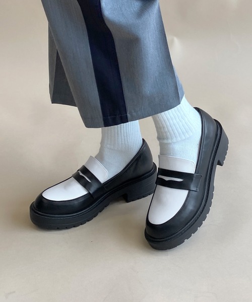 旬コーデにぴったりな厚底デザインのローファー今季も注目の厚底ローファーが登場しました。合皮の上品なツヤ感がクラシカルな雰囲気を演出してくれます。ボリュームのあるソールで脚長効果も抜群。安定感もあるので歩きやすく疲れにくいのが嬉しいポイントです。インソールにもクッション性があり履き心地にこだわりました。ブラウンとブラックのフロントはマニッシュな雰囲気漂うビットデザイン仕様。オフ/クロはシンプルながらもコーデを引き立ててくれるバイカラー仕様。1足あるととても便利なローファーです。 ■スタッフレビュー 【身長:159cm / 着用サイズ:L / 普段サイズ:24.0~24.5cm】 大人っぽいデザインのローファー。少し厚底になっていて、ボリュームのあるソールなので綺麗な形に見えます。 クッション付きで歩きやすいのも魅力的で、とても履きやすいローファーになっています。 【身長:156cm / 着用サイズ:M / 普段サイズ:23.5cm】 厚底ですがとても軽く、柔らかい素材感です。シンプルなローファーは1足あれば、様々なテイストで合わせて頂けます! ※商品の色はimageの着用写真ではなく、商品写真をご参照ください。 【お買いものにおすすめの便利機能!】 ★商品のお気に入り登録 完売カラーの再入荷の時や、ラスト1点の時、セールになった時にお知らせします。 ★ブランドのお気に入り登録 商品や再入荷、セール情報など、いち早くブランドのお得な情報を受け取ることができます。 ぜひご活用ください!