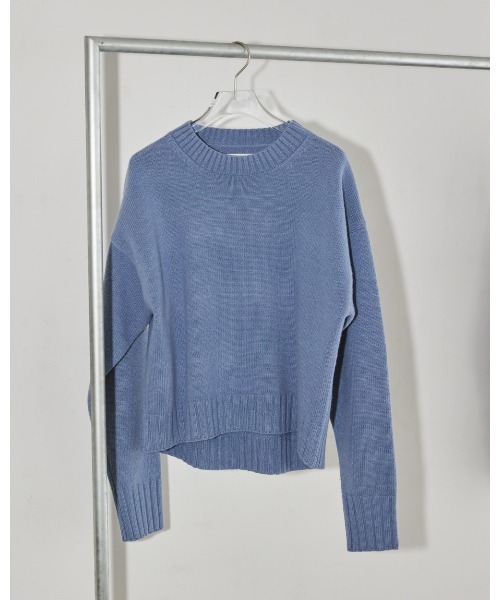 繊維が細く柔らかいカシミア混のスーパーファインメリノウールを使用したクルーネックニット。肌触りの良さが魅力です。リブをアクセントに、他はミニマルなデザインにすることで、素材の良さを際立たせた1枚。インナーにカットソーを合わせても◎ ボトムスを選ばないので幅広いスタイリングに合わせていただけます。程よい厚みなのでアウターが羽織りやすいのもポイント。