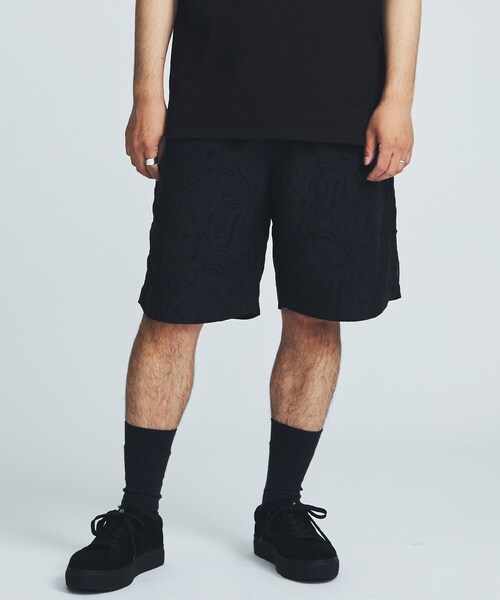 素材CUPRA 46%, COTTON 54%デザインオリジナルペイズリー柄のイージーショーツ。シックな同色のジャガード織りで縦糸がキュプラ、横糸がコットンを使用した交織。フロントジップ仕様で、膝丈・ワイドシルエット。F-LAGSTUF-F東京屈指のヴィンテージショップBerBerJinの元バイヤー 村山氏が“An uncategorizable genre"(何にもとらわれないボーダレスな物づくり)”をコンセプトに、2014年より東京でスタート。当時では異例なSNS中心にPR活動を行ない、口コミで東京ス