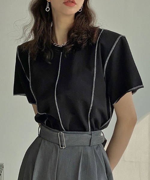 2022 Spring&Summer item『アウトステッチデザインがさりげないアクセントに』〇Design〈BLACL・LIGHTGRAYの2色展開〉・縫い目が表側に出たデザインがポイントのアウトステッチTシャツ。・シンプルなボディに、立体感のあるアウトステッチラインはこなれ感のある印象に。・ベーシックなカラー展開でデイリーに着回し。・カジュアルはもちろん、モードなキレイめスタイルにもぴったり!・オーバーすぎず、タイトすぎずの絶妙なシルエットで、幅広いアイテムと合わせやすいです◎・シンプルながらもさりげないデザインがお洒落な1枚となっています。〇Styling合わせるボトムを選ばず着られるので、デニムやスキニー、ワイドパンツでカジュアルに合わせたり。スラックスやフレアパンツ×パンプスでキレイめスタイルとも相性抜群。ハーフパンツ×ローファー合わせでトレンドライクな大人カジュアルに仕上がります。スカートスタイルとも合わせやすく、タイトスカートやマーメイドスカートで女性らしく合わせたり、プリーツパンツで上品さをプラスしたスタイルも◎シンプルなTシャツはオールインワンやキャミワンピースのインナーとしてレイヤードでも活躍!春夏の肌寒い時期はシアートップスやメッシュトップスを中に着て重ね着を楽しむのもおすすめです。韓国ファッションが好きな方は是非。こちらの商品はセレクト・インポートアイテムのためサイズ感が日本規格のものとは異なります。お買い上げの際にはサイズチャートでご確認頂きますようお願いいたします。【お買い物をよりお楽しみいただくために】●商品のお気に入り登録(ハートマークをクリック)完売カラーの再入荷や、ラスト1点のお知らせ、セール情報などの通知を受け取ることができます。●ブランドのお気に入り登録新商品や再入荷など、お得な情報をいち早く受け取ることができます。●最短で翌日お届け商品をカートに入れた後、注文内容の確認ページで「即日配送」を選択していただければ、最短でご注文した翌日にお届け致します。是非ご利用頂き、お買い物をお楽しみください。