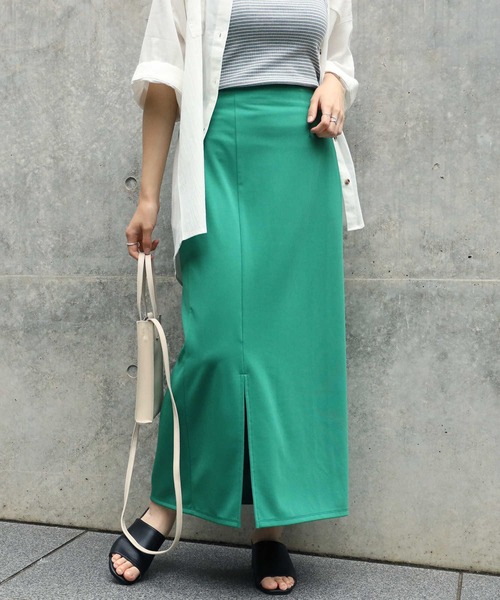 【デザイン】 さらっとした軽いポンチ素材で、前に斜めのスリットを入れてトレンド感を演出しています。 ウエスト部分にはゴムを入れており、履きやすい仕様になっています。 【カラー】 豊富なカラーバリエーションで様々なコーデが楽しめます。 【スタッフ着用レビュー】 さらっとしたストレッチ素材のスカートで、履き心地がとても良いです◎スリットですっきり見えするので、ビッグシルエットのトップスと合わせると◎