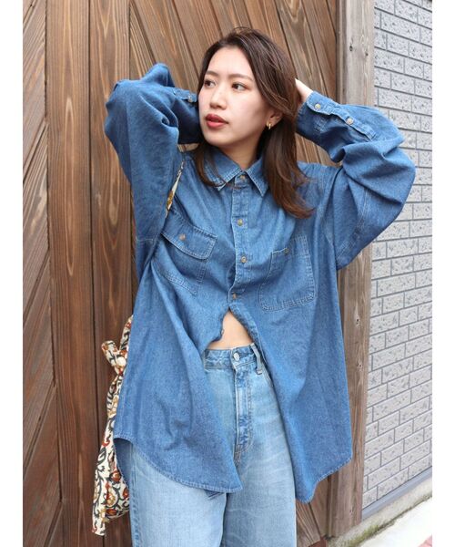 DENIM on DENIM にもオススメ! USED感のあるダンガリー生地を使用したビッグシャツ ■デザイン 洗い加工で色あせた風合いと柔らかな仕上がりで着心地の良い1枚。 細かな部分までステッチを施し、カジュアルシャツに仕上げています。 ■生地感 薄手のダンガリー生地で肌寒いシーズンには羽織りとして着用頂けます。 ■サイズ感 165cmの方でもヒップが隠れるぐらいの長めの着丈設定。 155cmの方はミニワンピースとして着ていただけます。 肩幅は大きめに設定しドロップショルダー仕様にしています。 ■スタイリング 今季ならハイウエストオーガニックコットンルーズデニム(品番:112242419701)と合わせてデニムオンデニムのスタイリングもオススメ。 第一ボタンだけを留めて都会的なスタイリングがおしゃれ見えします。 メンズライクなムードで楽しんでいただきたい1枚。 ・・・・・・・・・・・・・・・・・・・・・・ 透け感:なし 裏地:なし 伸縮性:なし 光沢感:なし 生地の厚さ:普通 ・・・・・・・・・・・・・・・・・・・・・・ ■商品のお気に入り登録 再入荷通知やラスト1点、お得なプライスダウンの情報も受け取ることができます。 ぜひご登録ください◎