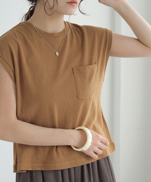 この夏活躍のフレンチスリーブTシャツ。 定番シルエットの長すぎず短すぎない絶妙な着丈で、 インスタイルもアウトスタイルもキマります。 左胸のポケットデザインがコーディネートのアクセントに。 トップスとしてのメイン使いはもちろん、 ビスチェやキャミワンピースのインナーとして着こなすのもおすすめです。 ワードローブに1点あると重宝します。 シンプルで使いやすいので色違いで揃えておくのも◎ ゆったりとした身幅でリラクシーな着心地。 フレンチスリーブデザインで二の腕のすっきり見せが叶います。 程良い詰まり具合のネックラインが甘さを抑えた大人の雰囲気をプラス。 軽く柔らかな肌触りの生地。 伸縮性がありストレスフリーな着心地が叶います。 - - - - - - - - - - - - - - - - - - - - - - - - - - - - - - - - - 透け感:なし 裏地:なし 伸縮性:あり 光沢感:なし - - - - - - - - - - - - - - - - - - - - - - - - - - - - - - - - - ※ 撮影時の照明などの環境と、モニターに表示される色味がメーカーにより変わってしまう等の理由により、実際にお届けする商品と、ご覧になられているアイテムの色が若干異なる場合がございます。ご了承下さいませ。