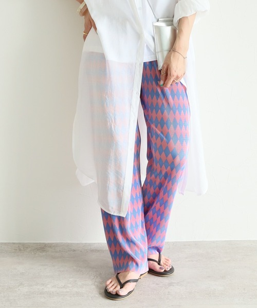 ■Point インパクトのある配色で目を引くレトロポップなダイヤ柄のパンツです。 シンプルなアイテムと合わせてコーディネイトのアクセントに◎ 存在感のあるデザインなので、アウトドアやおでかけにもおススメです! ■Deteil ウエストゴム仕様で伸縮性があり、足ったり座ったりも動きやすい着心地がGOODです。 程良くゆとりがあるのに、大人っぽく着こなせるすっきりとしたシルエット。 プリーツ加工仕様でシワになりくく、お手入れも楽ちんです♪ ■Coordinate ロング丈のTシャツやカットソー、シャツとのコーディネイトもかわいい! トレンドライクなゆったりトップスと合わせてもバランスよく着ることができます。 夏カラーのシンプルなきれいめトップスと合わせても上品に着こなせます。 ■綿素材の商品のお手入れ方法について 綿素材のお洋服はお洗濯方法により縮みやねじれて見える状態になることがございます。はじめてお洗濯をしていただく時に強く縮みが出る事がございます。 そのため、お洗濯の際は「手洗い」または「ドライコース」で行うことをおすすめしております。 また、脱水時間は30秒程度と短くするようにお願い致します。 乾燥機は縮む原因になりますのでご使用はお避け下さい。 干す際は『軽くしわを伸ばして』形を整えてから干していただくことをおすすめしております。 ■■■もっとお買物をお得にお楽しみいただくために■■■ 【商品のお気に入り登録】再入荷のお知らせや、ラスト1点のお知らせ、セールのお知らせを受け取ることができます! 【ブランドのお気に入り登録】新作商品や完売アイテムの再入荷情報など、お得な情報をいち早く受け取ることができます! ※サイズは現物をスタッフが平置き採寸したものになります。 ※モデル着用写真は撮影環境により、多少実際のカラーと異なる場合がございます。 ※生産時期により若干の色ブレやサイズの変動が生じる場合がございます。 生地の素材や種類によってシワになりやすいもの、または同じ素材でも製造時期によって異なる場合がございます。予めご了承くださいますようお願いいたします。 ※ご注文いただいた予約商品のお届け時期の確認は、注文履歴ページより行えます。