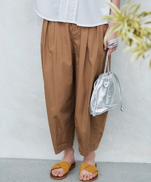 ブカ涼しいパンツ。 「アンクル丈のブカブカパン」は、すそ口を狭くした樽のようなバレルシルエットで、抜け感のあるアンクル丈で仕立てました。 薄くて軽くて丈夫な高密度ツイルを使い、涼しげなパンツになっています。 合わせやすい色で、夏にもってこいの一本です。