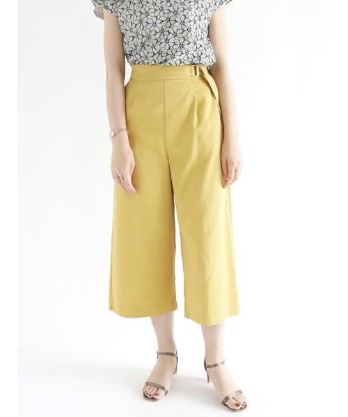 美脚とすっきり見えを叶えるワイドクロップドパンツ。しなやかなレーヨン混が上品で、伸縮性も備えているので動きやすいのも魅力です。ウエストサイドはDカン仕様で、お気に入りのフィット感に調節できるのもポイント◎いつものコーデにプラスワンするだけで、レトロ可愛くキマる今季注目アイテムです。ビビットなカラー展開にも注目。※商品画像は、撮影環境やお客様のご利用のPC・スマートフォンのモニター環境などにより実物と色味に差異がある場合がございます。【その他採寸】F ウエスト:[後ゴム仕様] 65cm