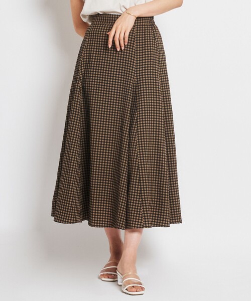 旬で着映える、ギンガムチェックのフレアスカート ■デザイン モノトーンとブラウンの小柄のギンガムチェックが大人フェミニンな印象のフレアスカートです。ウエスト周りはすっきりとしていますが、裾に向かって華やかにフレア感が出る美シルエット。 今年マストなギンガムチェック柄のスカートは程よいボリューム感で上品にこなすのがポイント。ウエスト位置も高めに作っているのでスタイルUP見えも叶えます。 【Fabric】ナチュラルな凹凸感が着心地と肌触りの良い、ギンガムチェック柄の素材です。 【Styling】 Tシャツやブラウス見えカットソーなどとシンプルに合わせてフレンチカジュアルにまとめるのがおすすめ。 ▼同シリーズ ワンピース(品番:OPPFNM0607)...6月下旬公開予定 ※商品画像はサンプルを使用しているため、色味やサイズ等の仕様に変更がある場合がございますので、予めご了承ください。 #フェルゥ #feroux #レディース #フェミニン #大人可愛い #カジュアル洗濯表示【本体のみ】40℃まで手洗い可 漂白不可 タンブル乾燥不可 日陰つり干し乾燥 アイロンは120℃まで 弱いドライクリーニング(石油系)可 弱いウェットクリーニング可