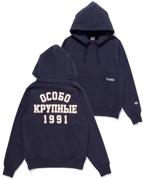 歴史に残る名品の数々を作り上げてきたChampionのクラフトマンシップの軌跡をたどり、細部を仕上げた40年代~60年代を中心とした当時のアイテムを起源とするこだわりのヴィンテージコレクション。今作は、通常のスウェットの首元にフードが縫い付けられた、パーカの元祖と言われる後付パーカ。酵素入りの液体と石で洗いう「ヘビーストーンエンザイムウォッシュ」加工を採用。長い年月をかけて生まれる滑らかな表面とユーズド的な素材感が表現されている。背中のカレッジ調ロゴは、主にロシアで使われているキリル文字で「EXTRA LARGE」を意味している。