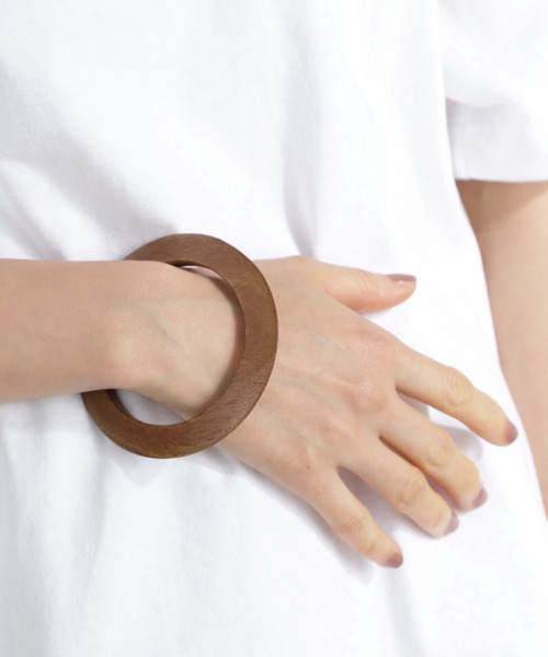 自然を感じるウッドバングル・スリムシルエット・シンプルなデザイン・深みのあるブラウン【スタッフレビュー】シンプルなラインが大人顔なウッドバングル。細幅のデザインで、手首をほっそり見せてくれます。一つでも手持ちのバングルやブレスレットと重ねづけも楽しめます。【取扱注意事項】モデルの着用画像の場合、光の当たり具合により、実際の色味と異なって見えることがございます。色味は、商品生地の画像をご参照ください。