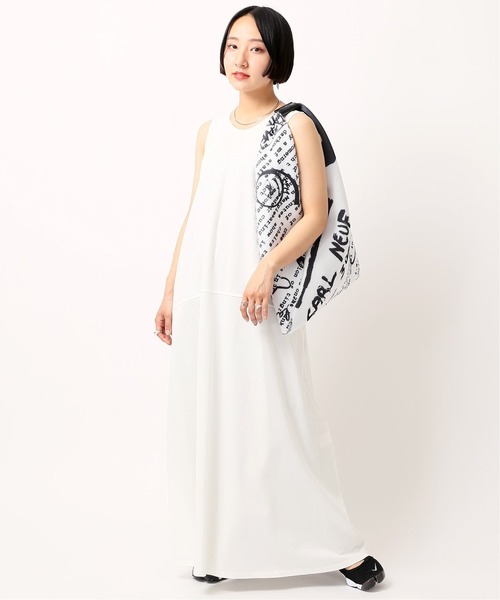 リラックス感のある緩やかなAラインのノースリーブワンピース。 クルーネックとアメリカンスリーブのデザインがカジュアルながらも女性らしさを演出。 夏場もさらりと着ていただける、ドライタッチのハイツイスト天竺素材を使用しています。 程よい生地の厚みでしわも気になりにくいです。 1枚でラフに着ていただけますが、ジャケットスタイルなどのきれい目な着こなしにもぴったり。 010カラー(ホワイト)は、透け感があるためデニムやワイドパンツとレイヤードするのがおすすめです。 シリーズ商品がございます。 (22070701158020 ラウンドTシャツ) ※取り扱いについては、商品についている品質表示でご確認ください。 ※店頭・外での撮影画像は、光の当たり具合で色味が違って見える場合があります。 商品の色味は、スタジオ撮影の画像をご参照ください。 ********************** 透け感:あり(ホワイトカラーのみ) 裏地:なし 伸縮性:ややあり 光沢感:なし 生地感:普通 生地の厚さ:普通 ********************** 【スタッフ着用コメント】 《スタッフ minori》 年齢:20代後半/身長:161cm/体型:痩せ型/普段サイズ:S・M/着用サイズ:フリーサイズ サイズ感:首回りは詰まっていますが窮屈ないサイズ感です。アームホールも程よく開いており着やすい。インナーが少し見えるくらいになります。 素材感:一枚で着ても薄すぎないカット素材。夏に一枚で涼しく着ることができそうです。 着心地:肌当たりはさらっとしているのでサマーシーズンにぴったりです。ジャケットやカーディガンなどの羽織り物と合わせるのも可愛いと思いました! ********************** 洗濯:洗濯機使用可(弱)