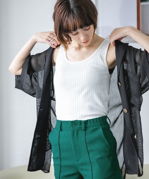 ーーー どんなアイテムとも相性の良いタンクトップ ーーー 心地よいフィット感で締め付け過ぎない着心地です。 綿100%なので肌に優しい素材です。 無駄なデザインが一切なく、デコルテラインがキレイに見えるような絶妙な開き具合になっています。 身体のラインを拾い過ぎないので、安心して着用できます★ 合わせるアイテムを選ばないアイテムなので、 シアーシャツやジレのインナーや、レイヤードスタイルの合わせとして大活躍間違いないです。 -INFORMATION- ◆商品のお気に入り登録 完売していても再入荷時に再入荷通知を受け取ることができますので、是非ご登録ください♪ ◆ブランドのお気に入り登録 新商品や再入荷などの情報を受け取ることができますので、是非ご登録ください♪